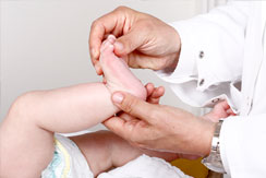 Congenital foot deformities may be encountered in infants. In most cases these are harmless malalignments that resolve on their own. Massaging the foot is a useful supportive measure. These deformities include talipes calcaneovalgus and metatarsus adductus.